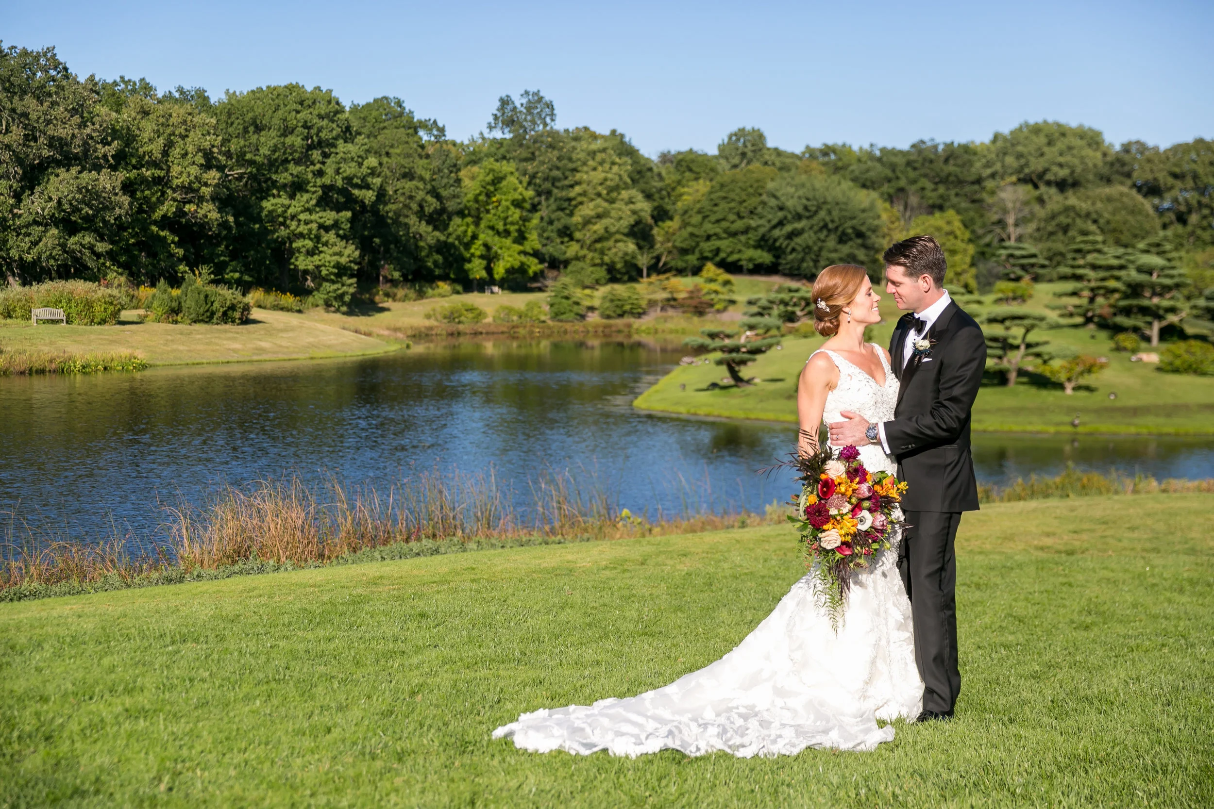 Event Planner: North Shore Wedding and Events | Venue: Chicago Botanical Gardens| Bride Gown: Ysa Makino, Dimitra’s Bridal Couture | Bride Hair & Make Up: Antonette White | Groom’s Tux: Suitsupply | Rings: Merry Richards Jewelers | Bridesmaid Dresses: Dessy Collection, Cenzina Bridal & Boutique | Groomsmen Tuxes: The Black Tux | Florals & Rentals: Ashland Addison Floral & Event Decor | Catering: Culinary Landscape | Cakes: Non-Vegan Elysia Root; Vegan West Town Bakery | Invitations: Momental Designs | Calligraphy: Samantha Joy Events | Linens: BBJ Linens & Hall’s Rentals | Entertainment: Ceremony Phil Feo, Royal Trumpet Works; Reception Front of House, Arlen Music | Videographer: Jason Monroe, Highway 61 Films