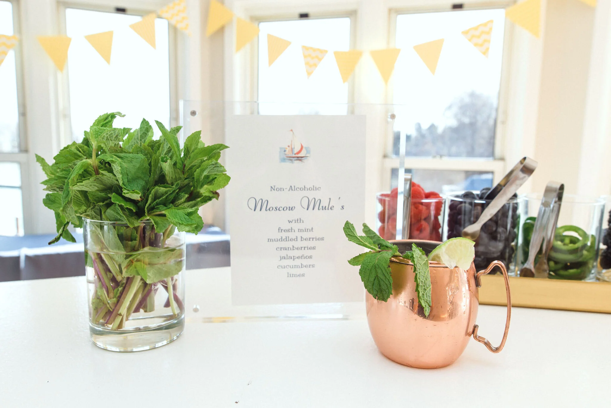 In addition to a full menu of food, we created some fun mocktails for everyone to enjoy. The 'create your own' Moscow Mule mocktail was a huge hit! For a little something sweet, we had cookies and ice cream, passion fruit mousse in chocolate cups, and the pie in a jar. Again, everything was tasting size, so sampling was encouraged.