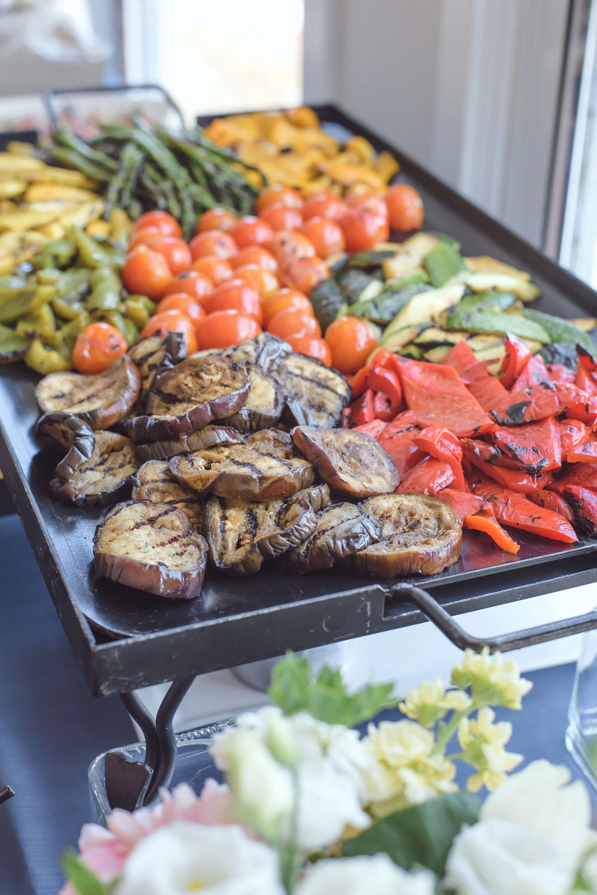 As always, we choose food that both Brian and I enjoy and told our story. We actually worked with the same caterer who did our wedding, so they were able to pull in some of our favorite appetizers from our wedding day. We did a tasting menu which I find is a fun way to approach an event like this. It allows guests to sample and try lots of different things, and there is always something for everyone! It also makes accommodating your guests with dietary restrictions much easier. The vegan burritos were actually a crowd favorite.